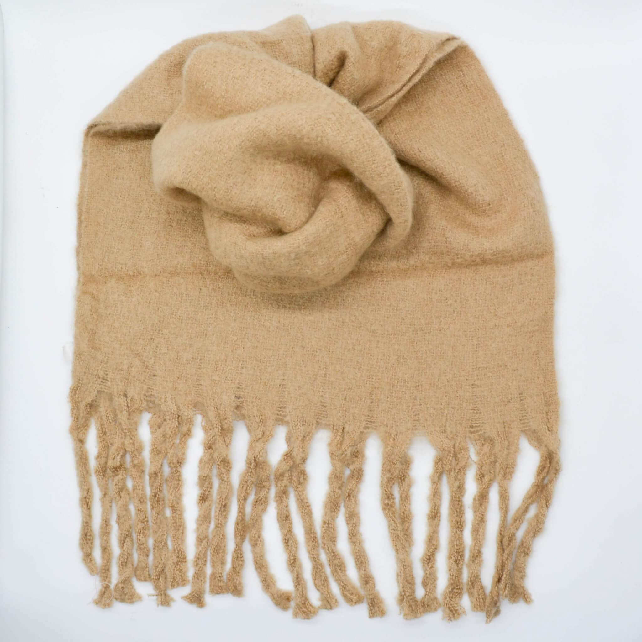 Mantón liso con flecos largos.