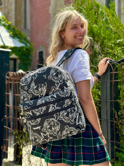 Mochila estampada de cordura con 1 división y bolsillo delantero con 2 cierres.