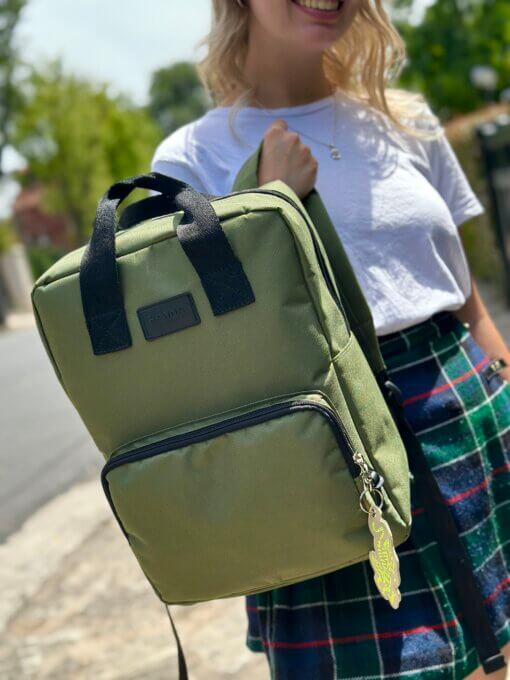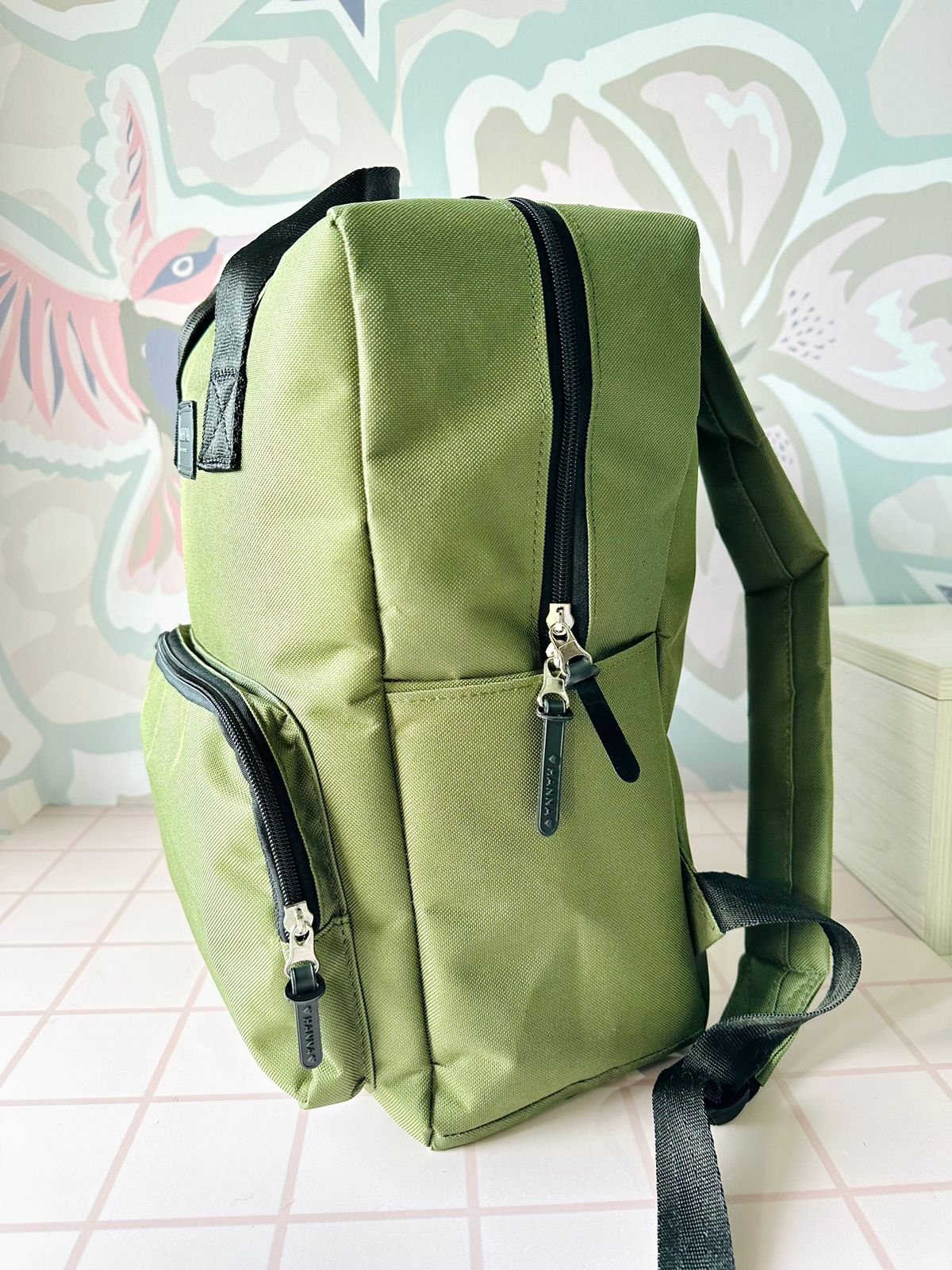 Mochila lisa de cordura con tira cierres y etiqueta de goma.