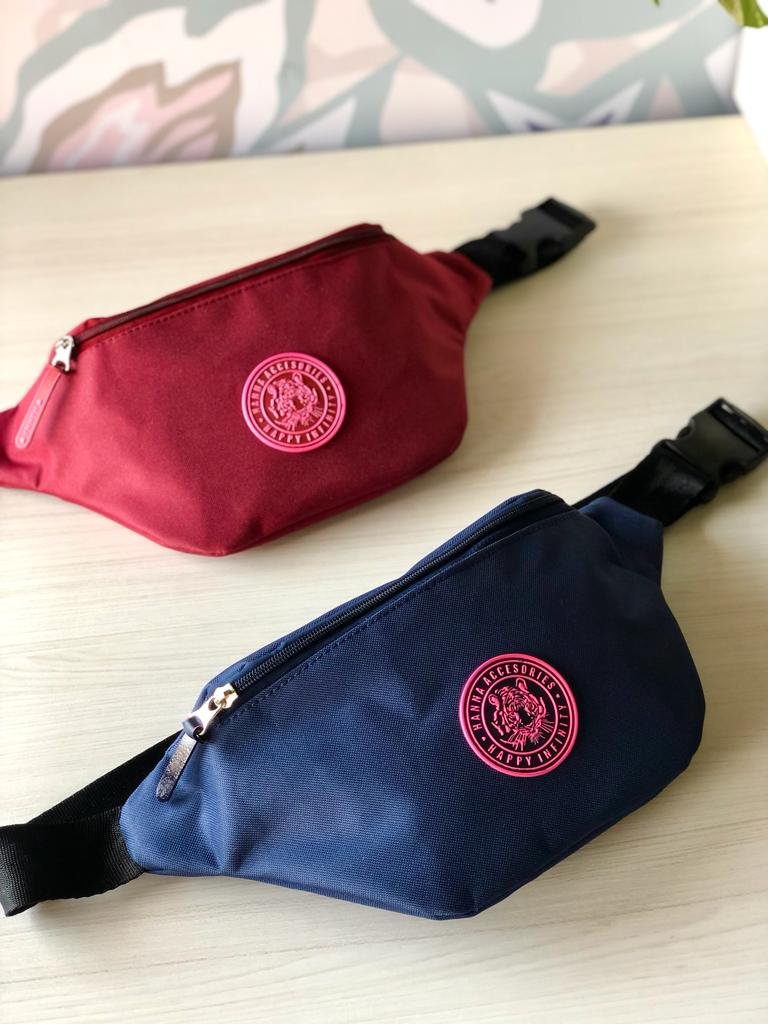 Riñonera con cierre y bolsillo trasero.