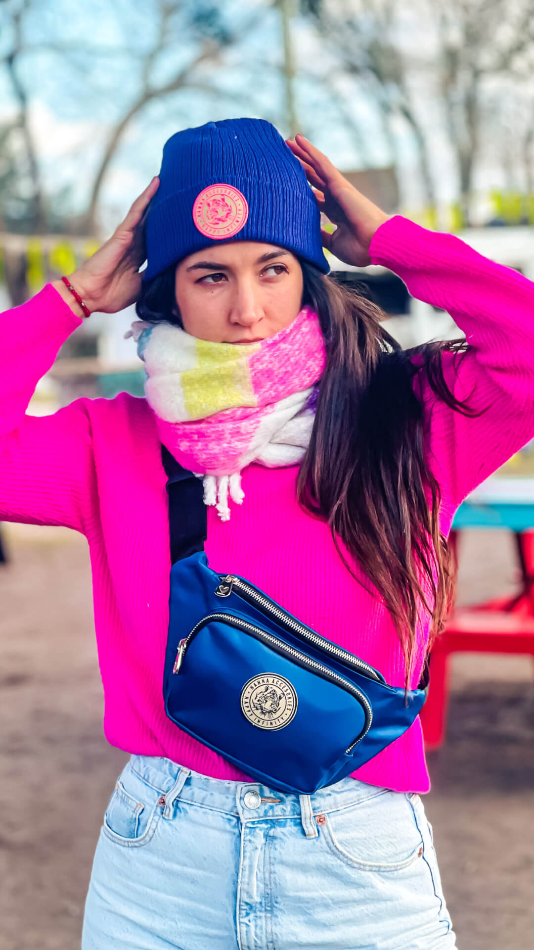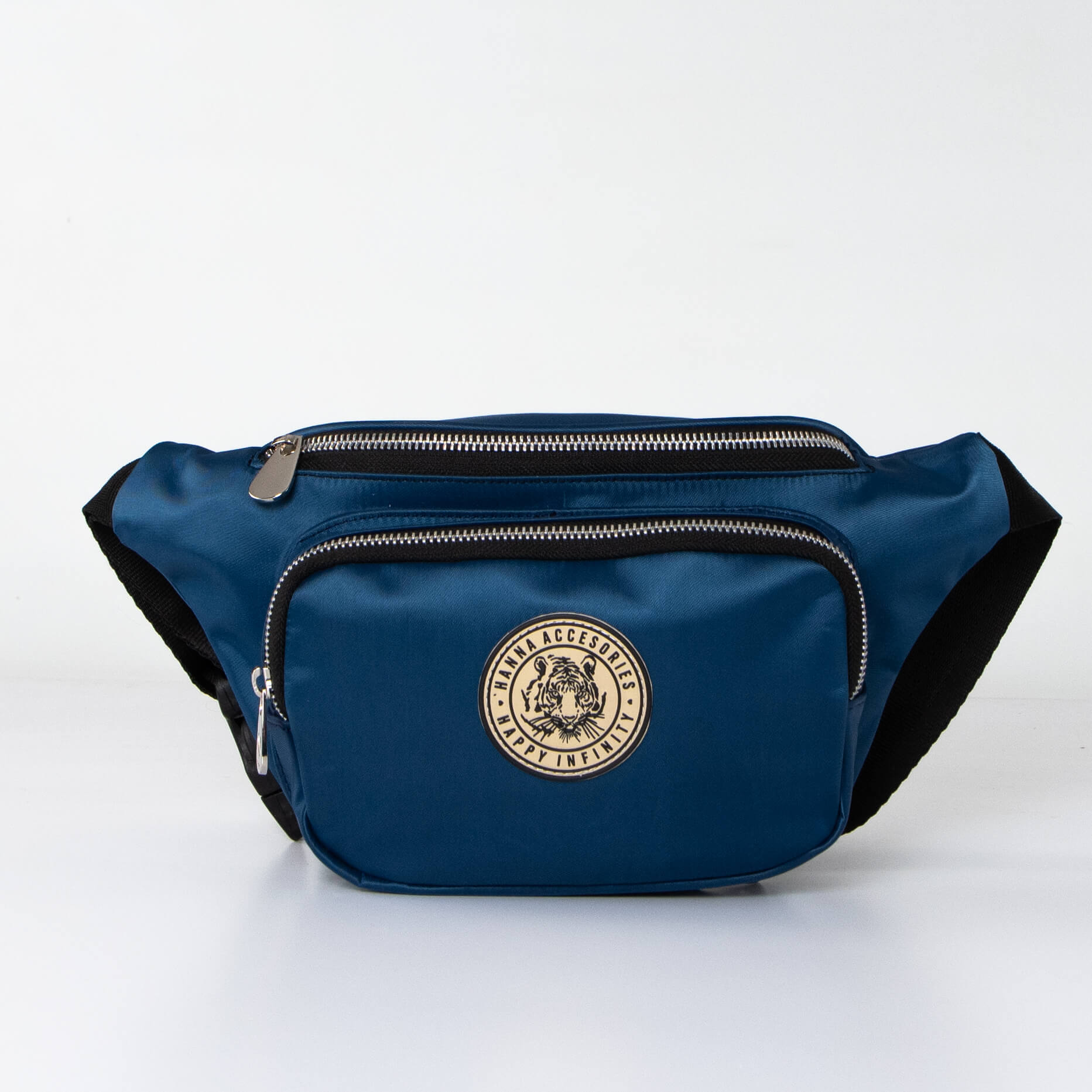 Riñonera con bolsillo delantero con cierres de metal.