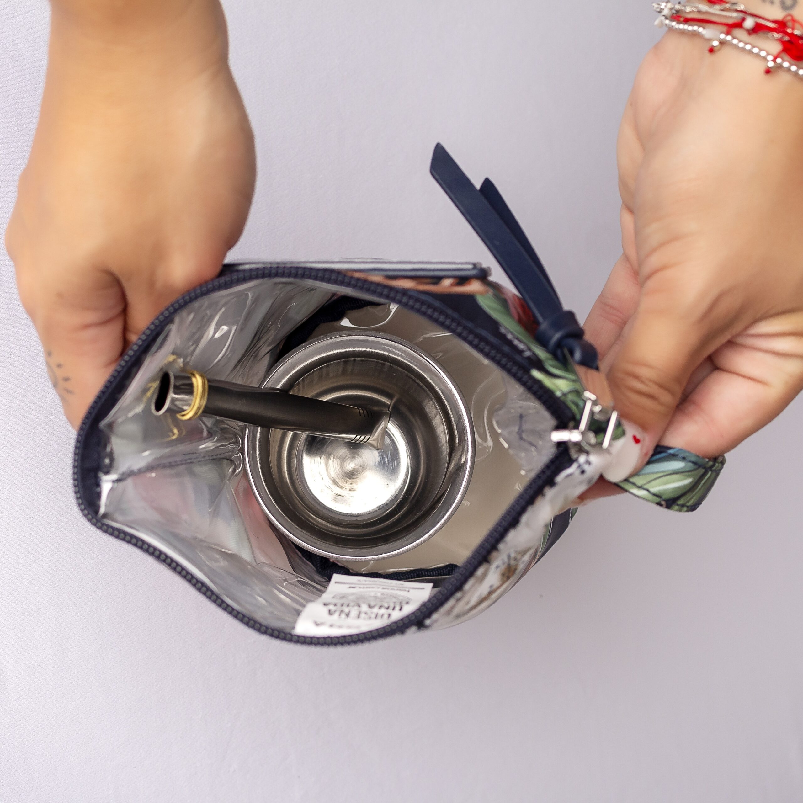 Yerbera práctica y minimalista, con recorte en PU que aporta un toque sofisticado.