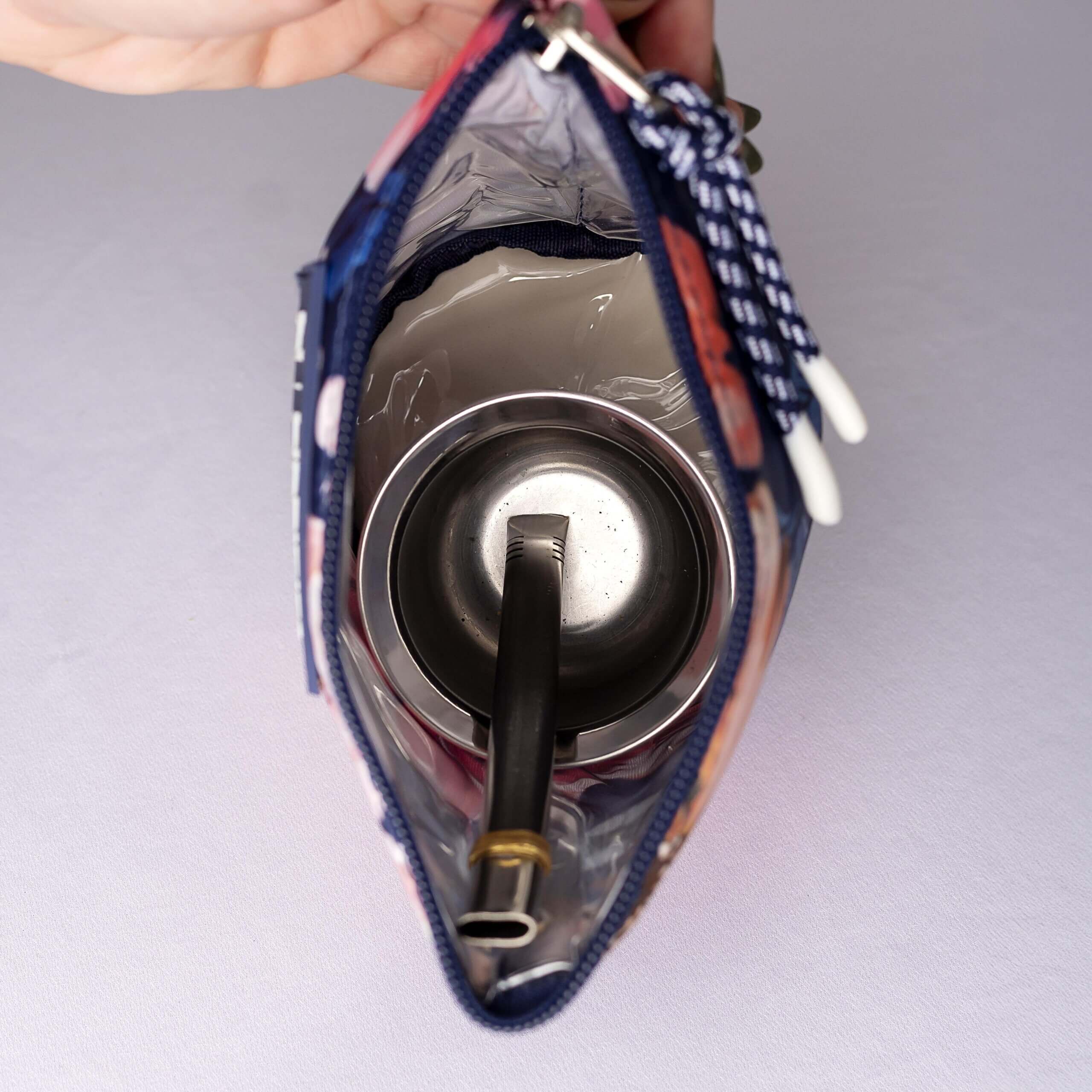 •Interior plastificado y resistente: se puede usar como yerbera o para guardar el mate usado.